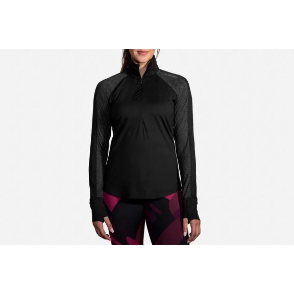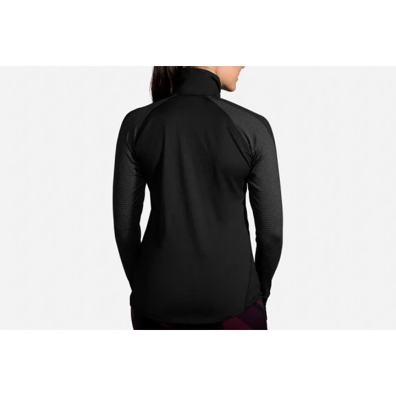 Camiseta running Brooks Dash de media cremallera negra mujer de corte semi ajustado y con tacto muy suave gracias al tejido DriLager.