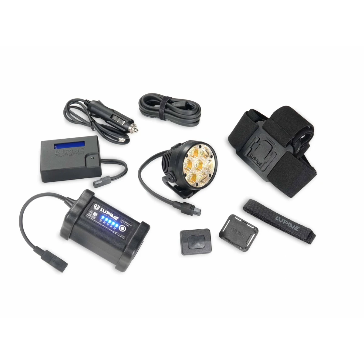 Faro Betty, mando a distancia Bluetooth, soporte para la correa de muñeca del mando a distancia, batería SmartCore de 6,9 Ah, cinta para la cabeza FrontClick, extensión de 120 cm, cargador y bolsa.