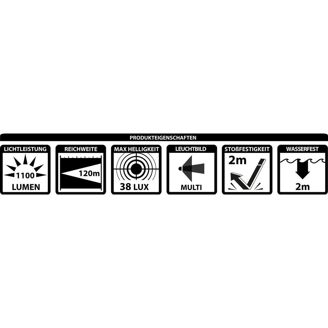 Linterna frontal compacta con 1100 lúmenes, batería integrada y numerosas funciones de iluminación. Ya sea el faro principal, la luz roja, la luz difusa o el refuerzo: con los dos botones situados en la parte superior del , podrá controlar todas las funciones de la luz fácilmente y como si fuera usted mismo.