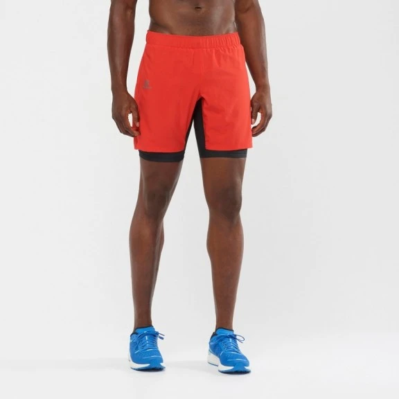 Pantalón trail running Salomon Xa Twinskin rojo hombre