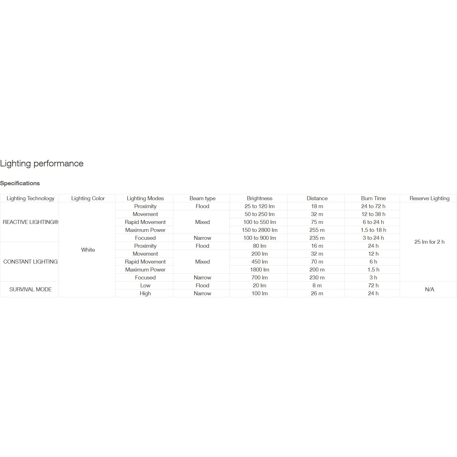 - Modo de supervivencia configurado para hasta 72 horas de iluminación mínima